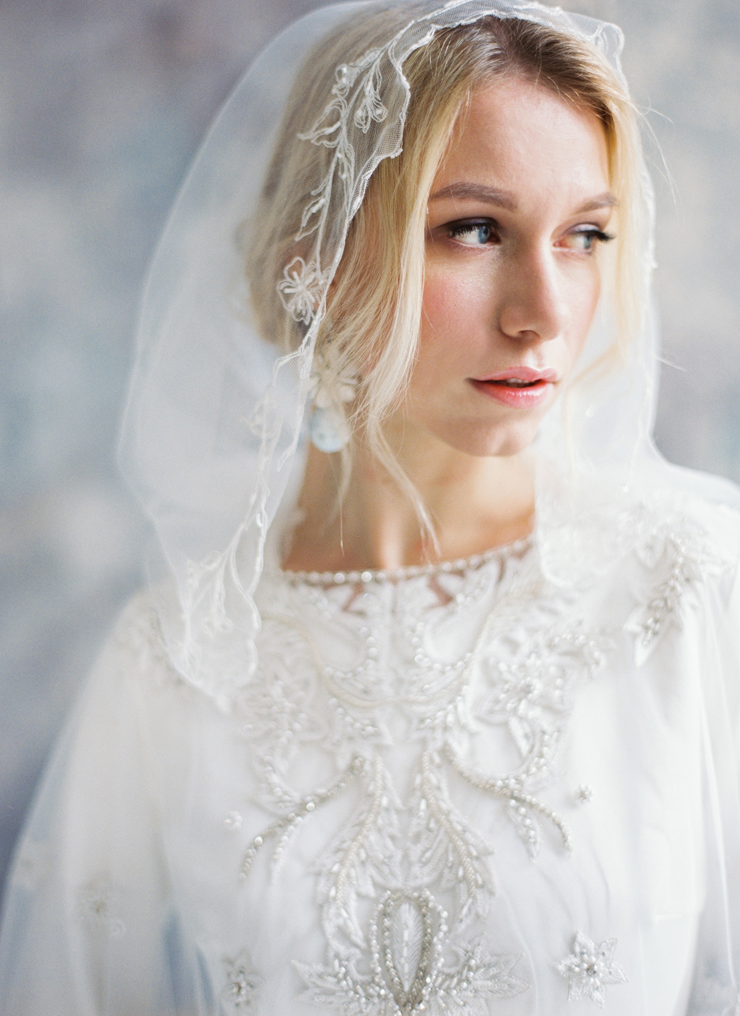 Минимум страз! Максимум жемчуга. Мелкого, рассыпанного по кружеву, как утренняя роса. Или вышивка гладью — нитками в тон платья. Это создает эффект дорогой винтажной вещи, которую носили поколениями. Еще один тренд — пояса и броши на поясе, которые символически «опоясывают» невесту.