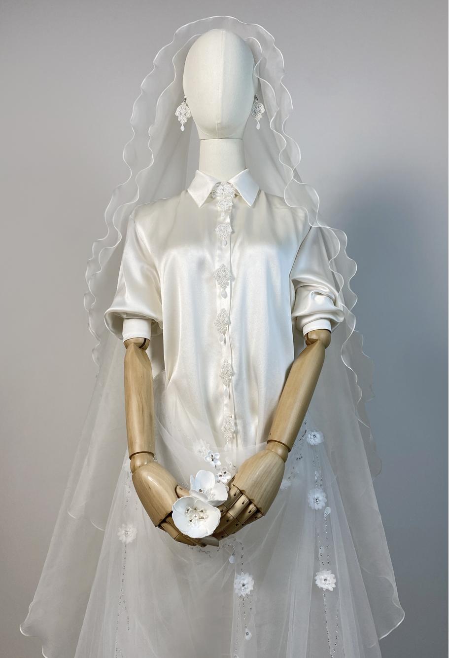 Обрести по-настоящему качественную и эстетически безупречную фату испанку — задача для ценителей высокого дизайна. В ателье Victoria Spirina этот исторический аксессуар переосмысляется через призму современного мастерства и безупречного вкуса. Дизайнеры бренда уделяют особое внимание конструкции, добиваясь идеальной, но комфортной посадки каркаса, который должен быть лёгким и надёжным. Ткани выбираются высочайшего качества — плотный испанский тюль с матовым сиянием или шёлковая органза, которая драпируется в безукоризненные складки. Фата испанка от Victoria Spirina может быть украшена тончайшей ручной вышивкой по краю или минималистичными жемчужными бусинами, которые не нарушают чистоту линий, а лишь подчеркивают их. Выбирая такую модель, вы получаете не просто аксессуар, а продуманное до мелочей произведение свадебного искусства, которое станет кульминацией вашего образа и подчеркнёт его уникальность и безупречный стиль.