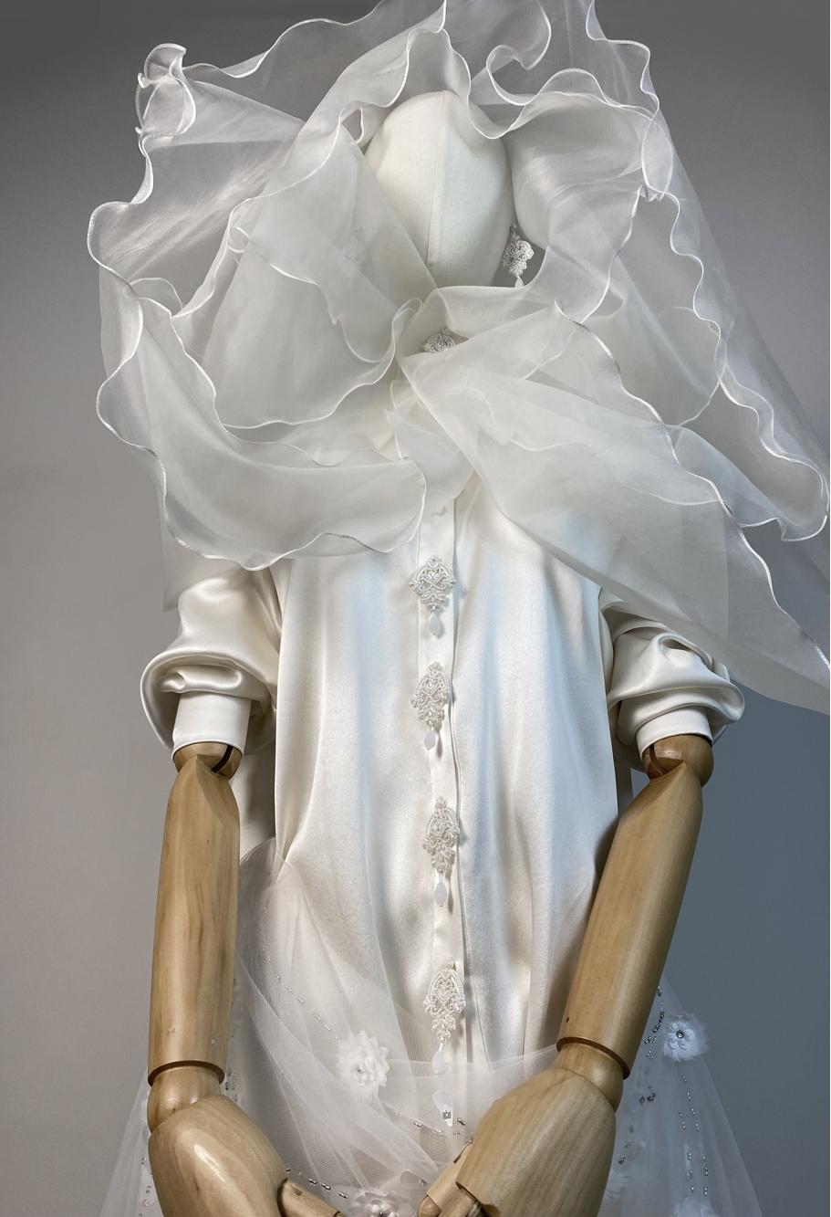 Оригинальная фата — это фата с историей, где вплетена антикварная кружевная лента бабушкиного платья или расшита инициалами жениха и невесты на внутренней стороне. Она создаётся как диалог между традицией и авангардом, романтикой и архитектурной чёткостью.