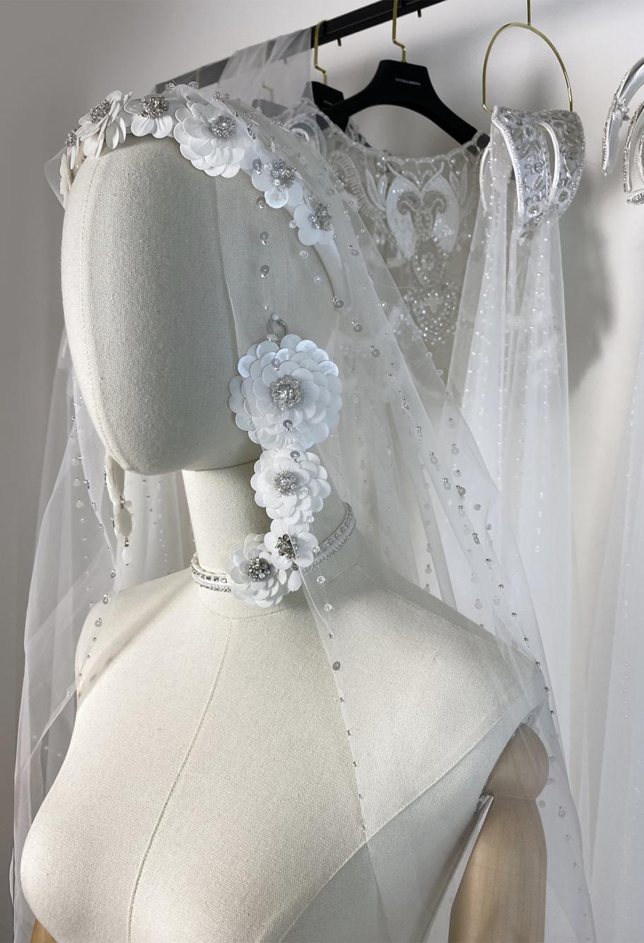 Этот женственный аксессуар создает ощущение воздушности и нежности, идеально дополняя как классический, так и современный свадебный образ.