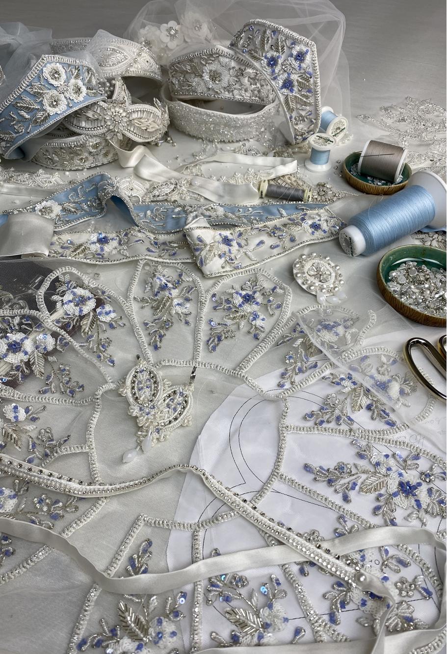 материал: вышивка шёлком, бисер, стразы, камни, пайетки