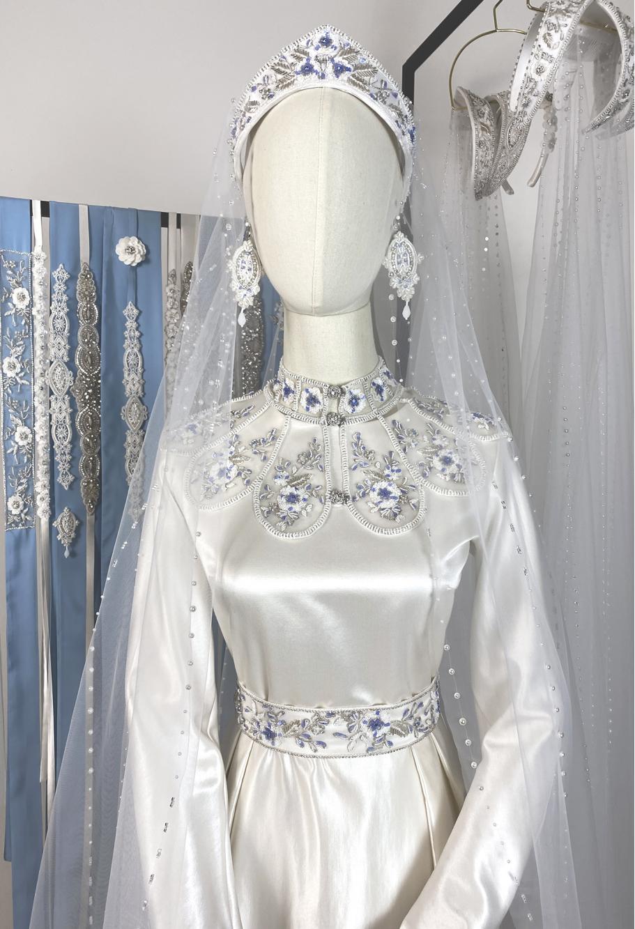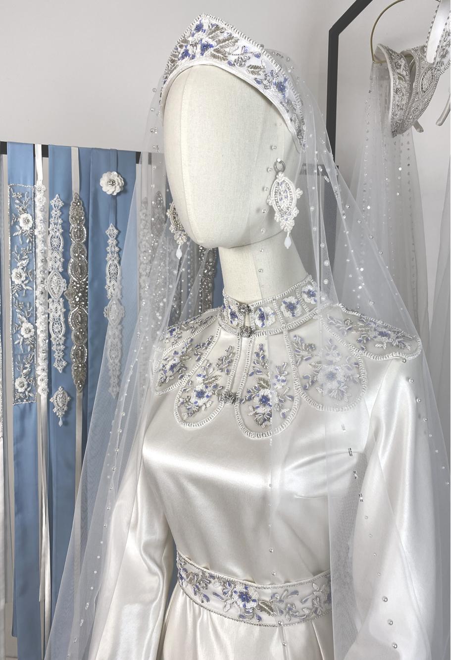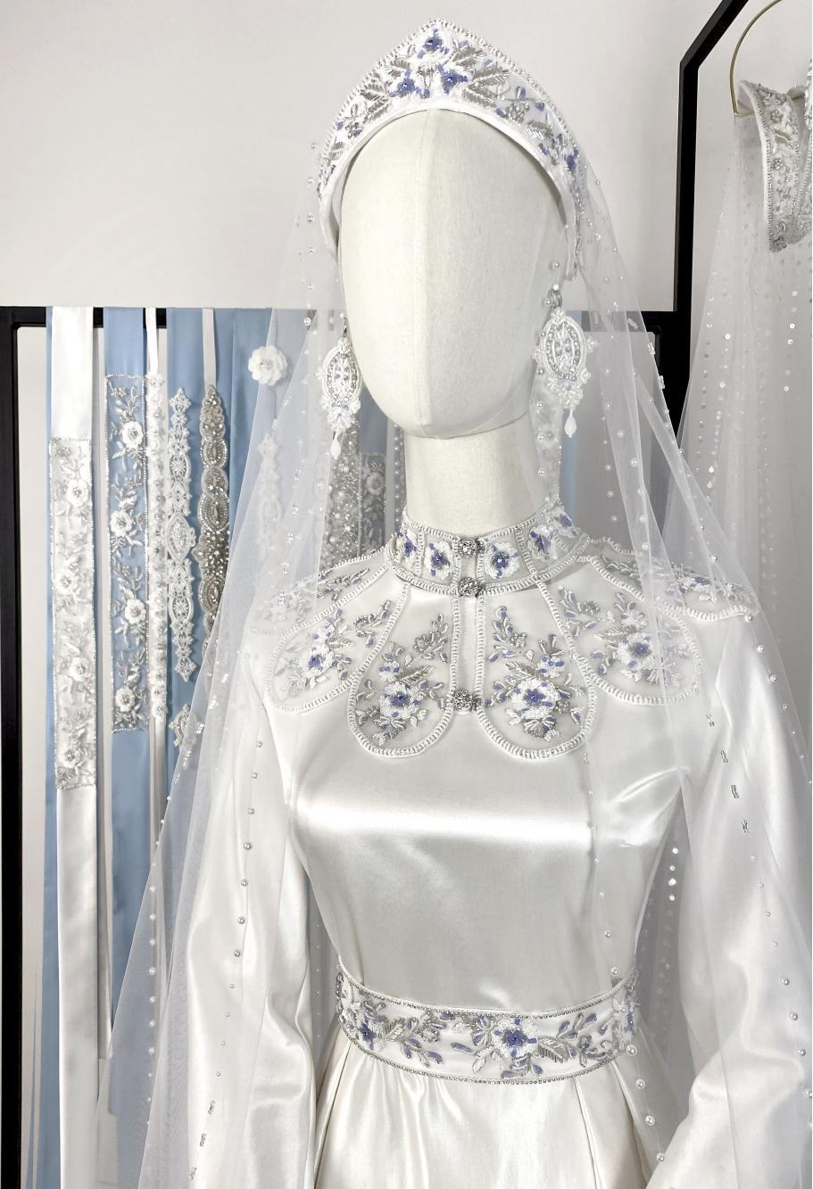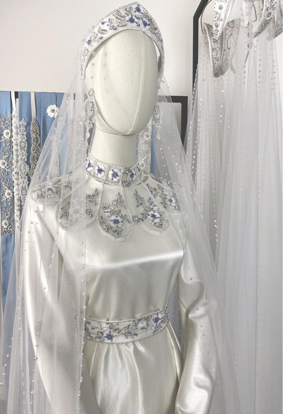 фата, кокошник, серьги, пояс, манжеты, вышивка на край подола