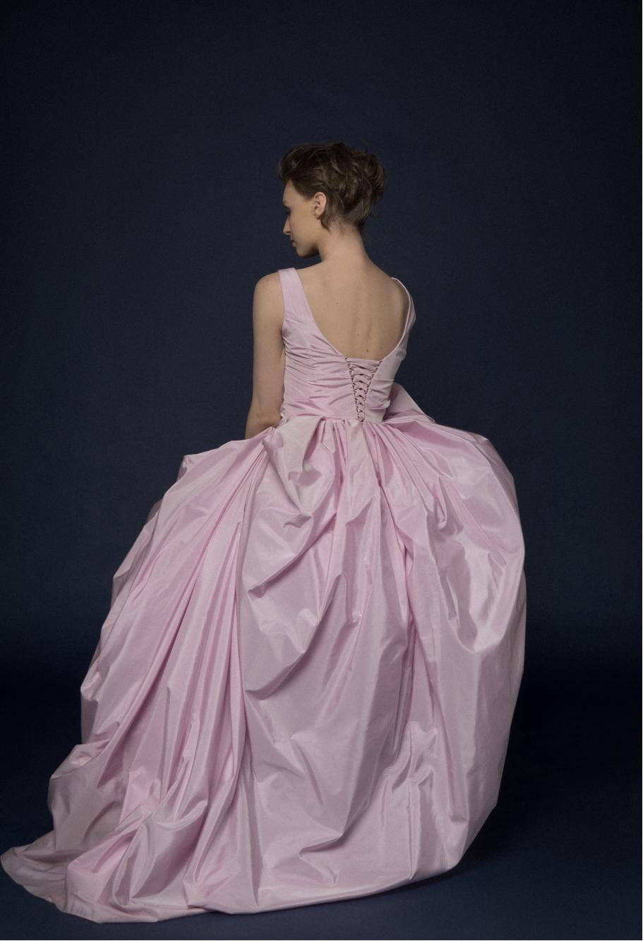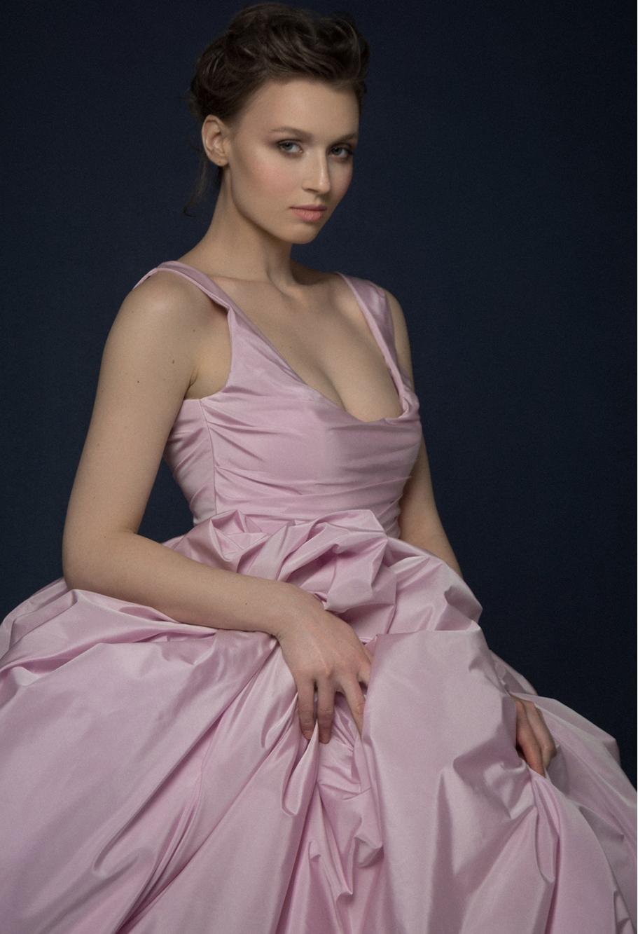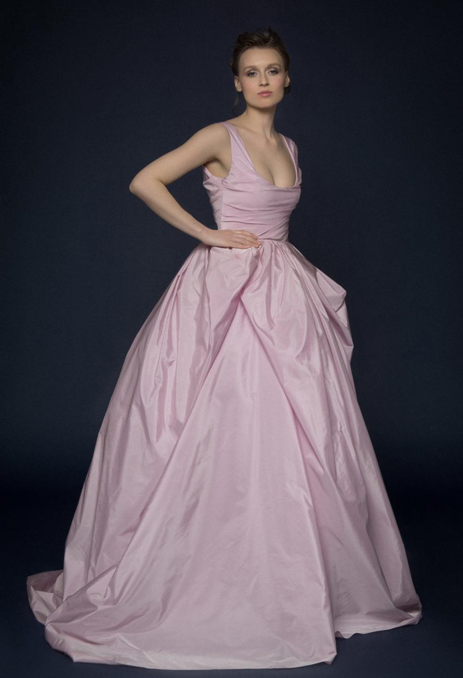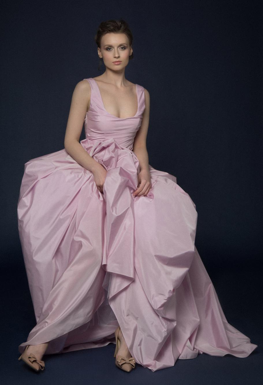 описание: Роскошное пышное свадебное платье из нежной шёлковой тафты обворожительного оттенка нежной розы. Верх платья корсетный на лямках украшен красивой драпировкой.