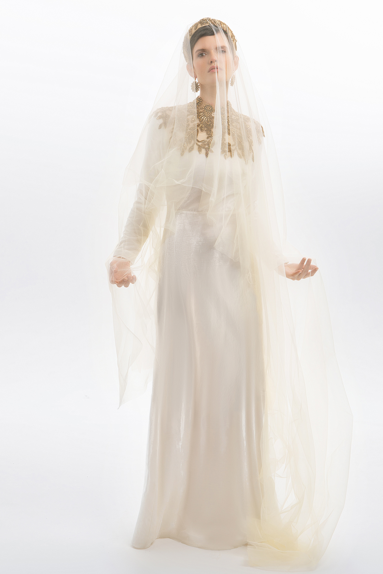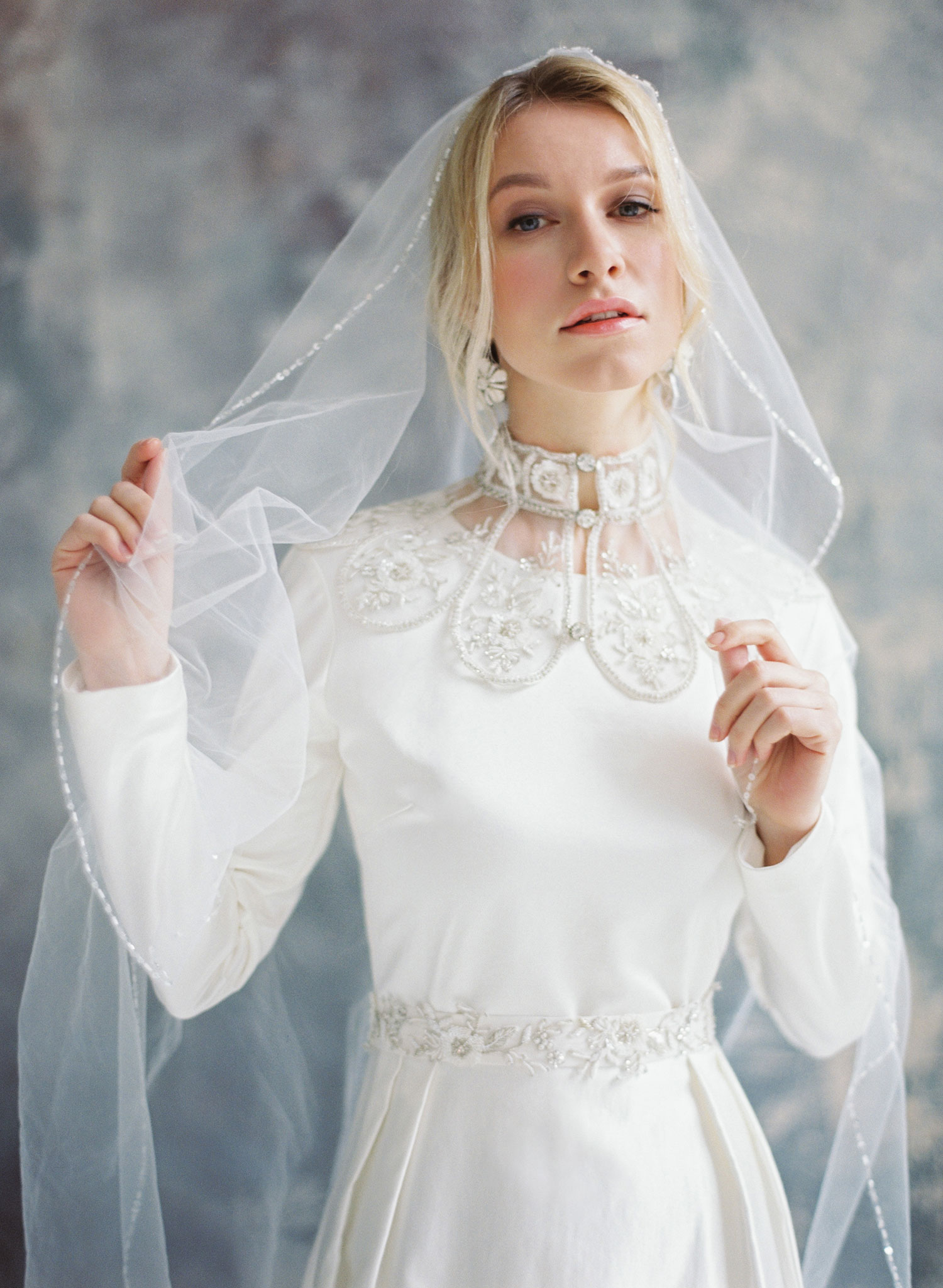 Минимум страз! Максимум жемчуга. Мелкого, рассыпанного по кружеву, как утренняя роса. Или вышивка гладью — нитками в тон платья. Это создает эффект дорогой винтажной вещи, которую носили поколениями. Еще один тренд — пояса и броши на поясе, которые символически «опоясывают» невесту.